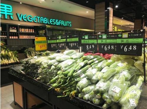 今天,记者在中百仓储黄浦路店看到,货架上黄瓜、苦瓜、胡萝卜等均两三根捆成一份,上海青、油麦菜、红菜苔都是1斤左右为一份,椒类、菇菌类盒装打包好,价签都已经贴在了菜品包装上,排列整齐。