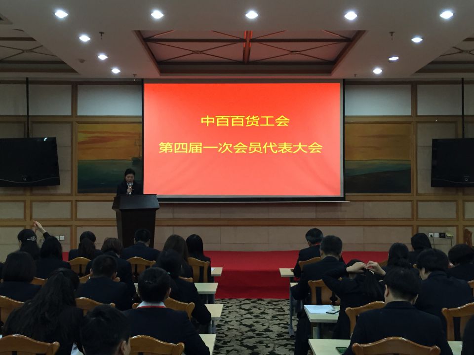 2017年11月9日上午9:30时在雄壮的国歌声中,中百百货工会第四届一次会员代表大会如期举行,会议由上届工会主席任德智同志主持。公司69名会员代表、19名列席代表参加了会议。