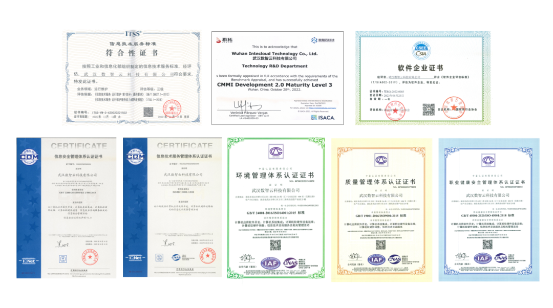 数智云科技公司自成立以来,一直致力于内生能力建设和科技创新工作,不断探索商业全渠道、供应链协同、智能物联、大数据应用等领域,全力研发零售科技的创新应用,助力客户企业数字化转型和高质量发展。通过自身能力建设,已拥有IOS质量管理五体系认证、ITSS信息技术服务标准三级认证、CMMI软件能力成熟度三级认证等多项权威机构认证资质。同时,成功入选了武汉市首批数字经济服务资源池企业、2023年科技型中小企业认定。
