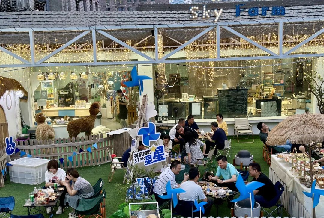 在商场六楼的天台上,一场集音乐、美酒、美食、萌宠、露营、鲜花、绿植于一体的夏日嘉年华精彩上演。20余家新业态品牌与10余名优质供应商齐聚一堂,携手VIP会员朋友,共同为市民们带来了一场别具一格的夏日盛宴。