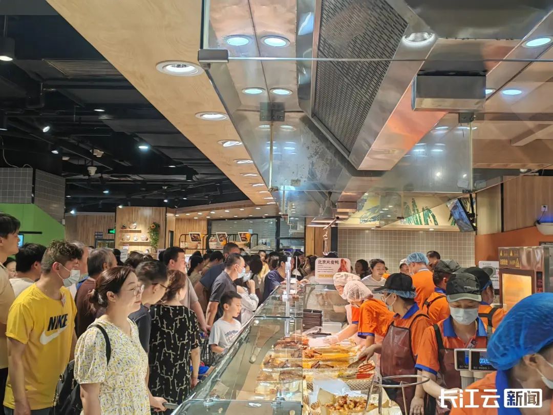 上午9:30左右,长江云新闻记者来到超市入口,已经有不少市民排队等待进场。刚进门,就有超市工作人员进行购物引导。