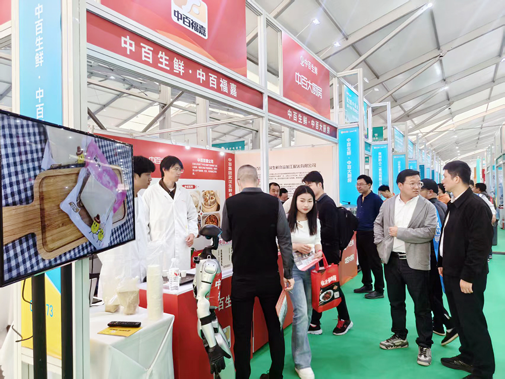 步入中百生鲜展区,一台身为“中百鲜食推荐官”的AI机器人率先吸睛,它既能与观展客商智能互动,生动讲解每一款产品的特色与优势,更以好玩又实用的科技体验,迅速聚拢了大量人气,为展位注入了十足活力。